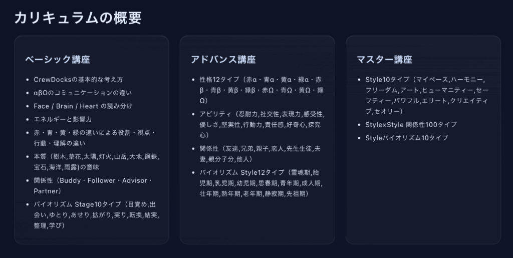そのような中で、CrewDocks®︎はこの叡智を政治から軍略まで生かされてきたという出自そのままに、実生活で生きて使える実学として、社会に貢献するツールとして研究を重ねてきました。今では職場からスポーツチーム、学校、家庭において、まさに「リアルに使える学問」として成熟期を迎えています。